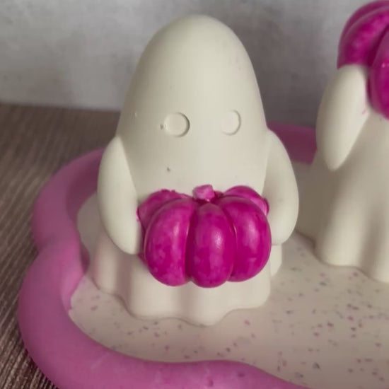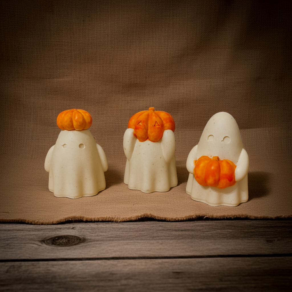 Bring a touch of spooky-cute charm to your home this autumn with our handmade jesmonite ghost ornaments. Each little ghost is crafted with care and finished with a bright orange pumpkin β whether itβs perched on their head, held close, or carved into a tiny jack-oβ-lantern.